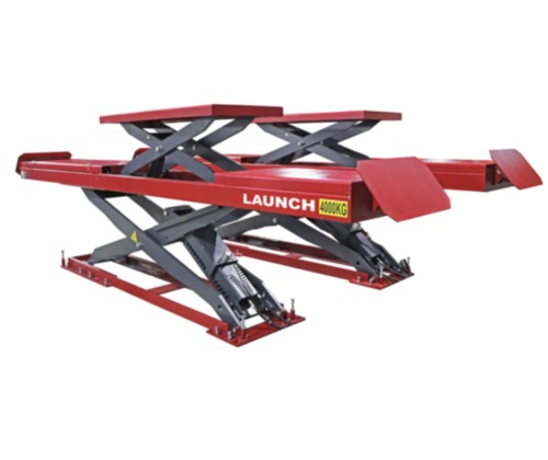 Elevador de doble tijera con sobre-elevación y dos pistones de carga de 3.0Tn, para profesionales y talleres mecánicos y de reparación / alineación. Con plataformas móviles para alineación. Para instalar empotrado (opcional rampa para superficie)